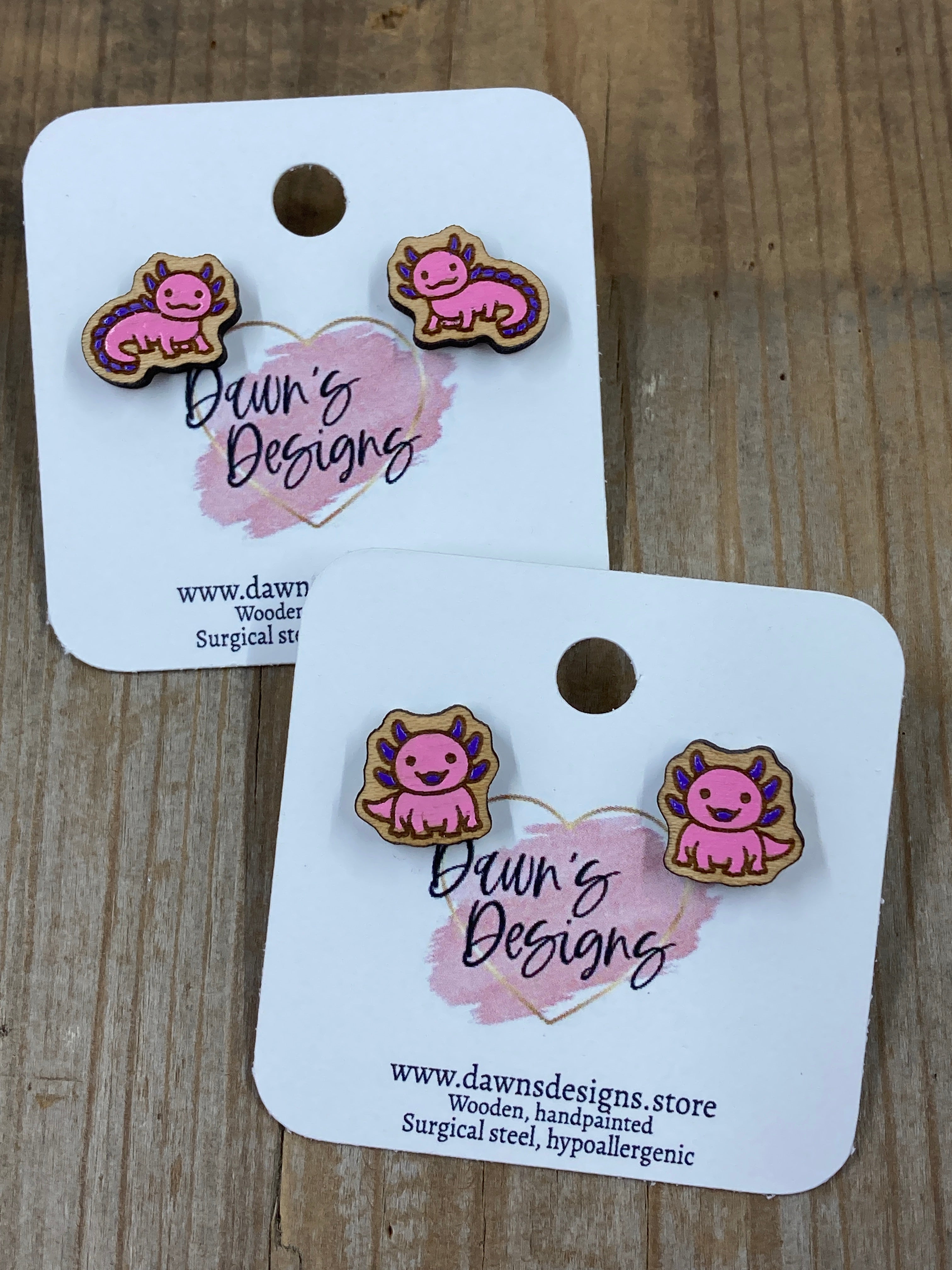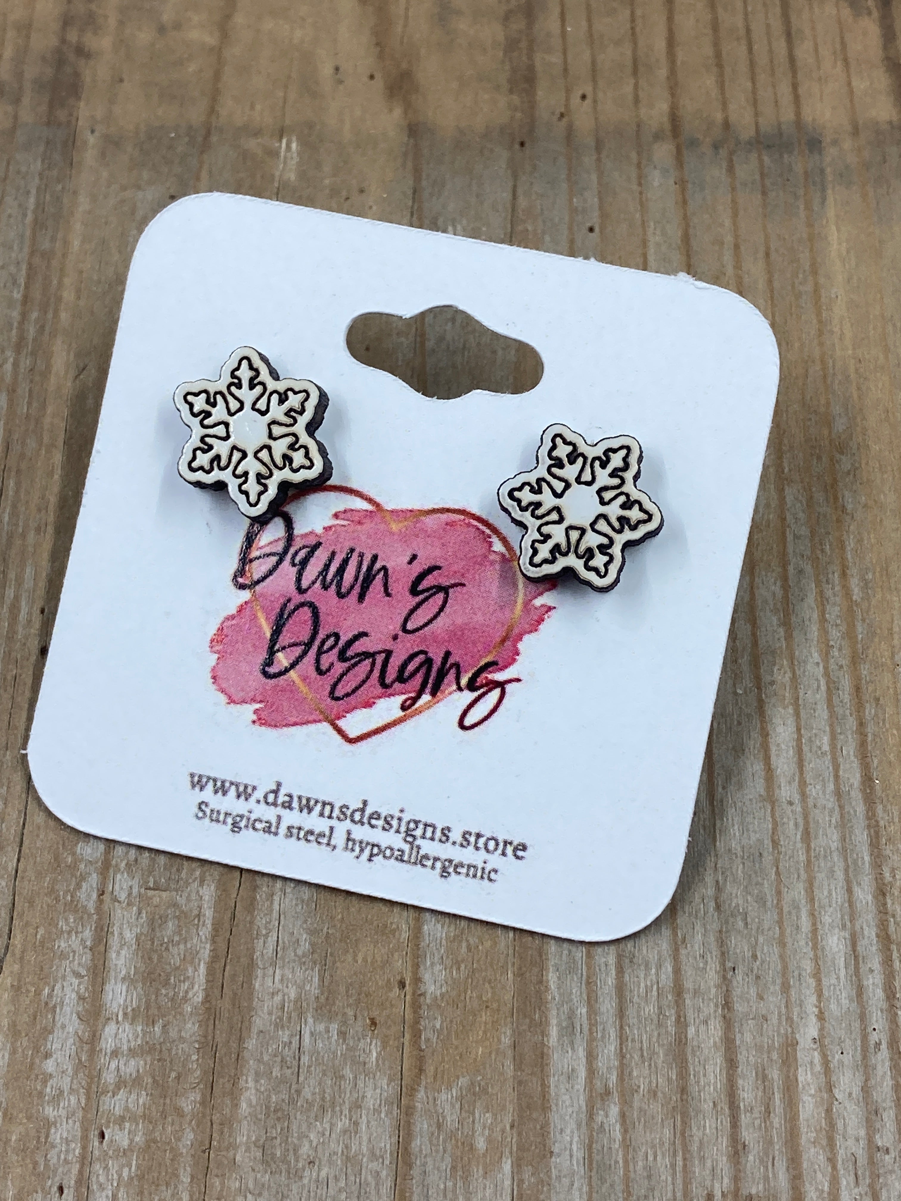 Dawn's Designs specializes in wood earrings, keychains, and specialty boards. All earrings are hand painted and have surgical steel hypoallergenic posts and hooks. Looking for something specific? Don't be afraid to reach out! I would love to hear what you would like to see!