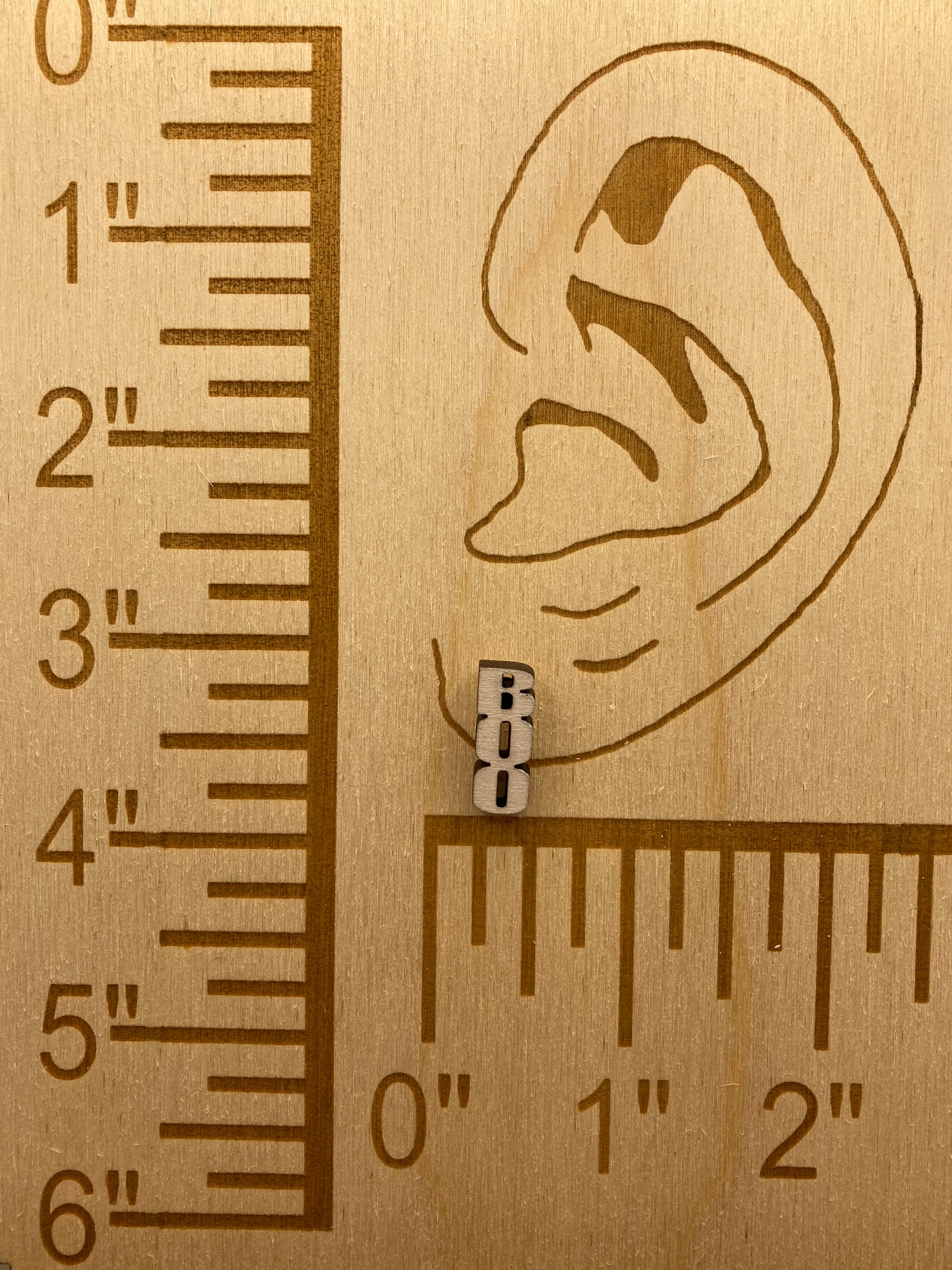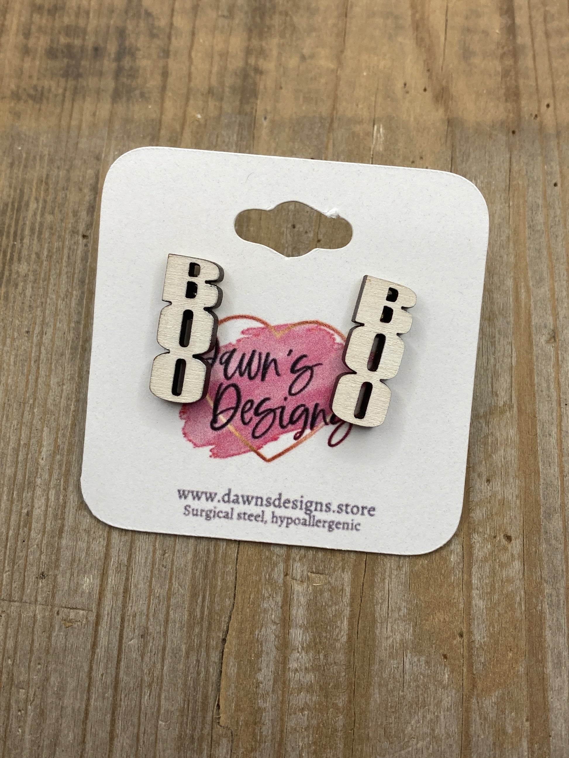 Hand-painted, laser-cut, wooden BOO Stud stud earrings. Approx. ½”