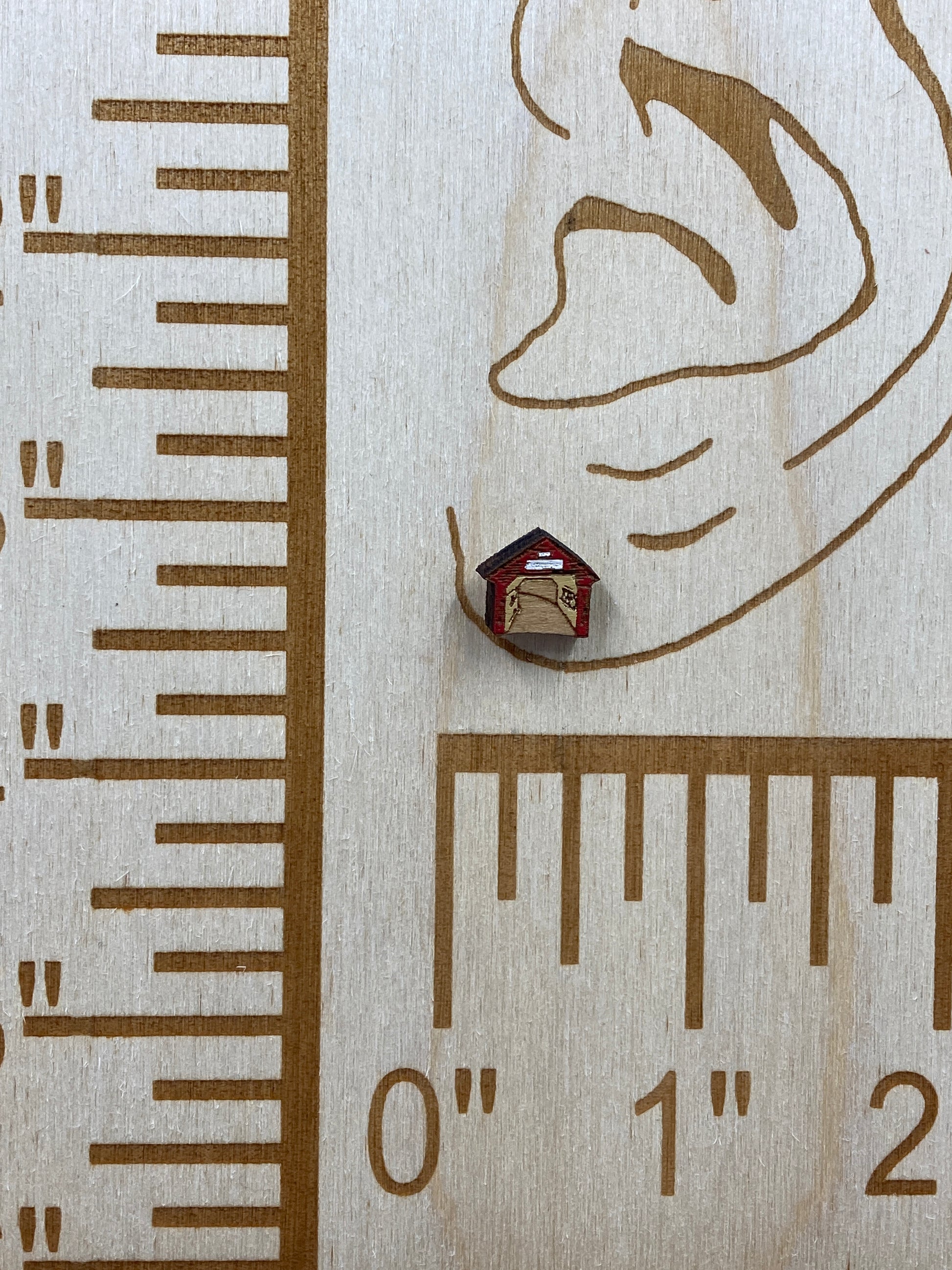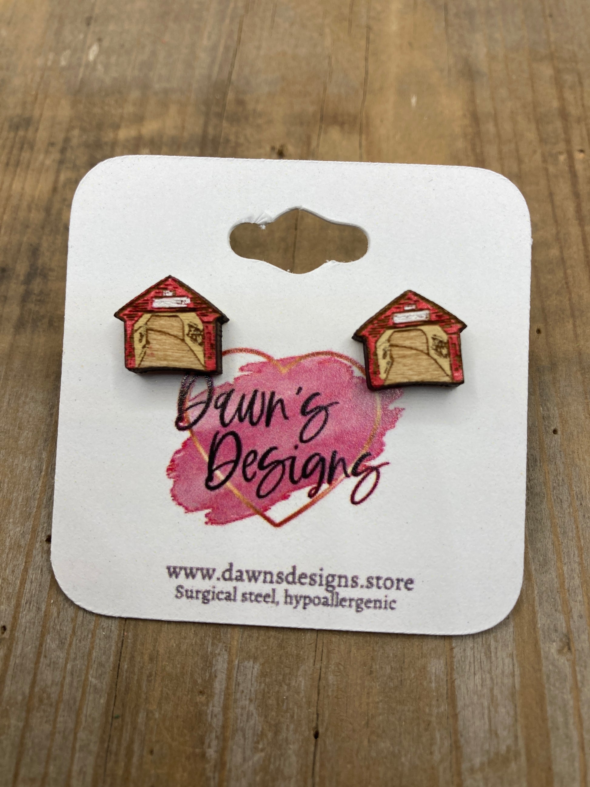 Hand-painted, laser-cut, wooden covered bridge stud earrings. Studs are approx. 1/2" diameter.