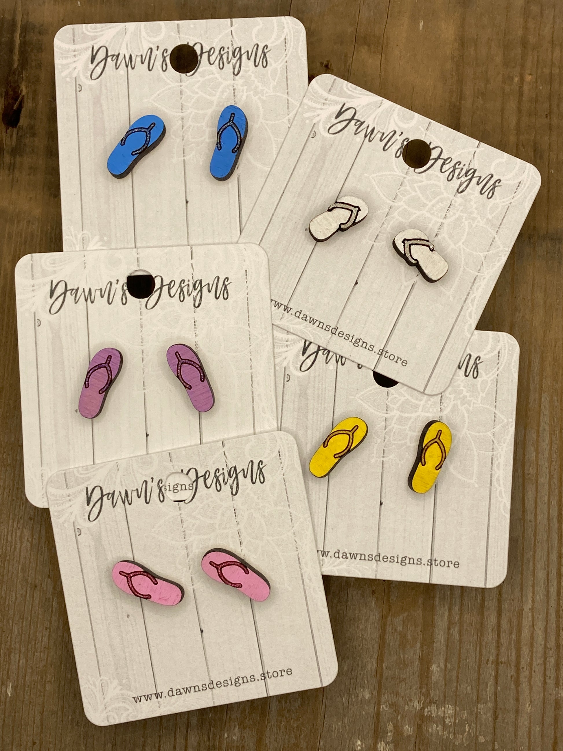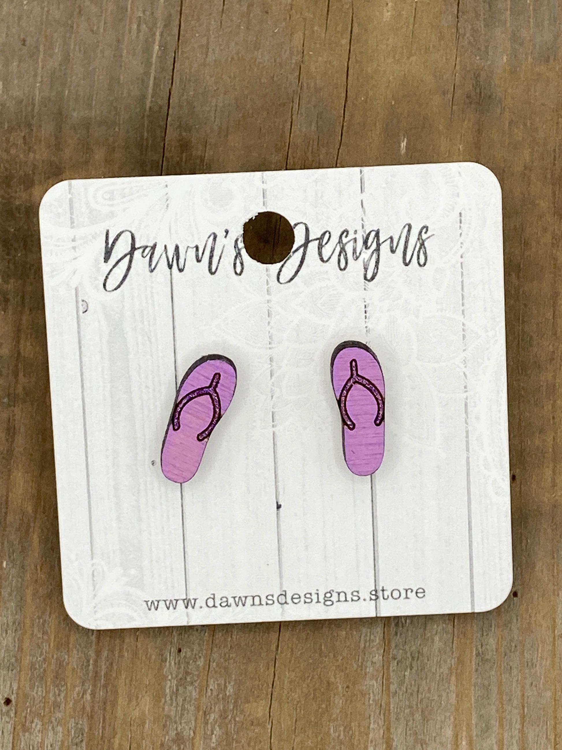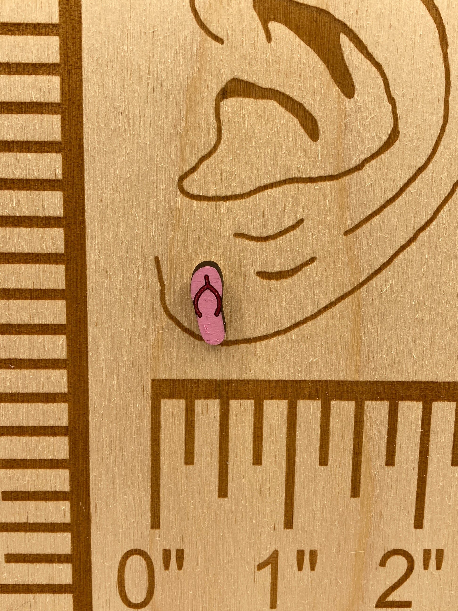 Hand-painted, laser-cut, wooden flip flop stud earrings. Approx. ½”