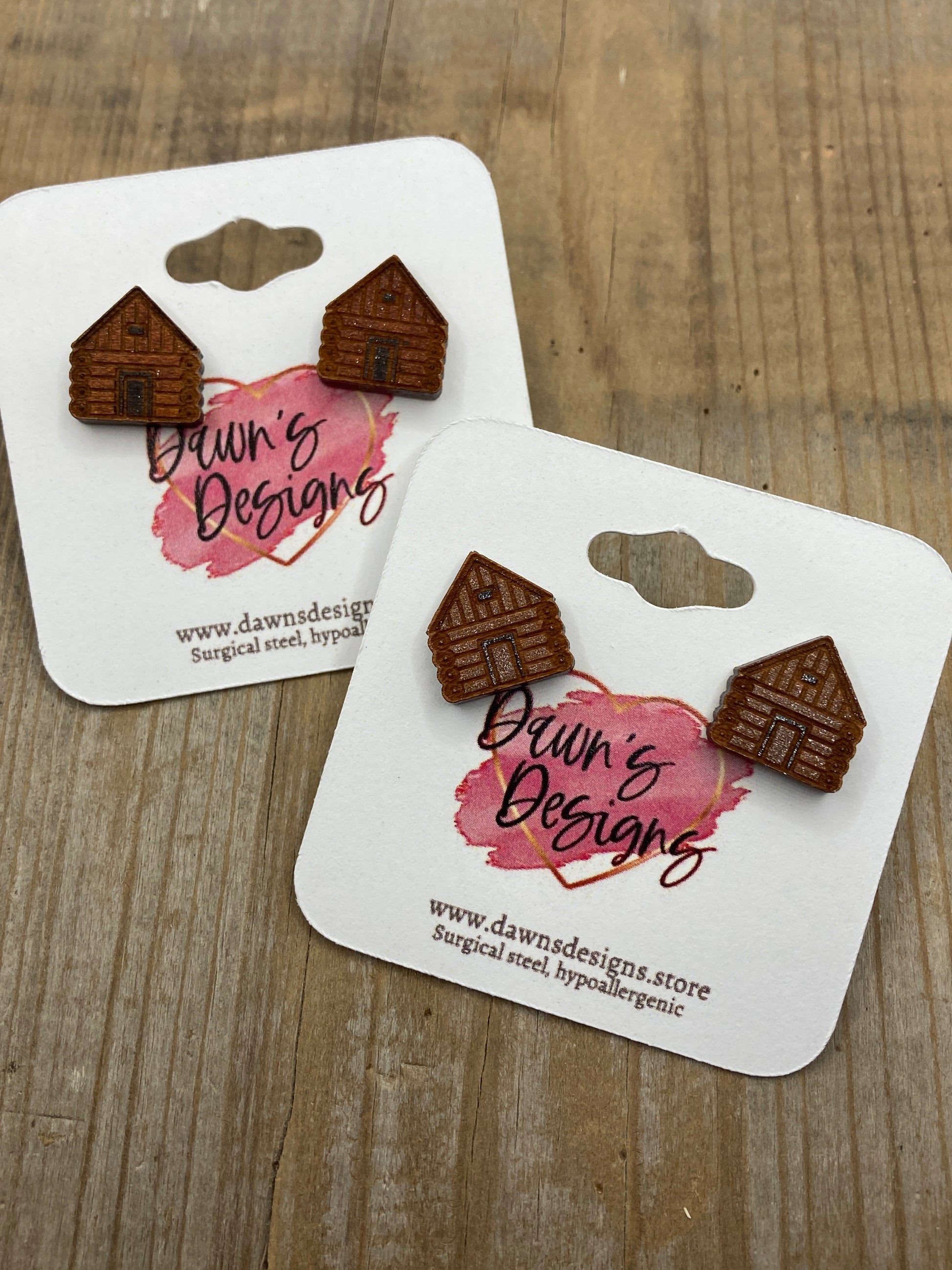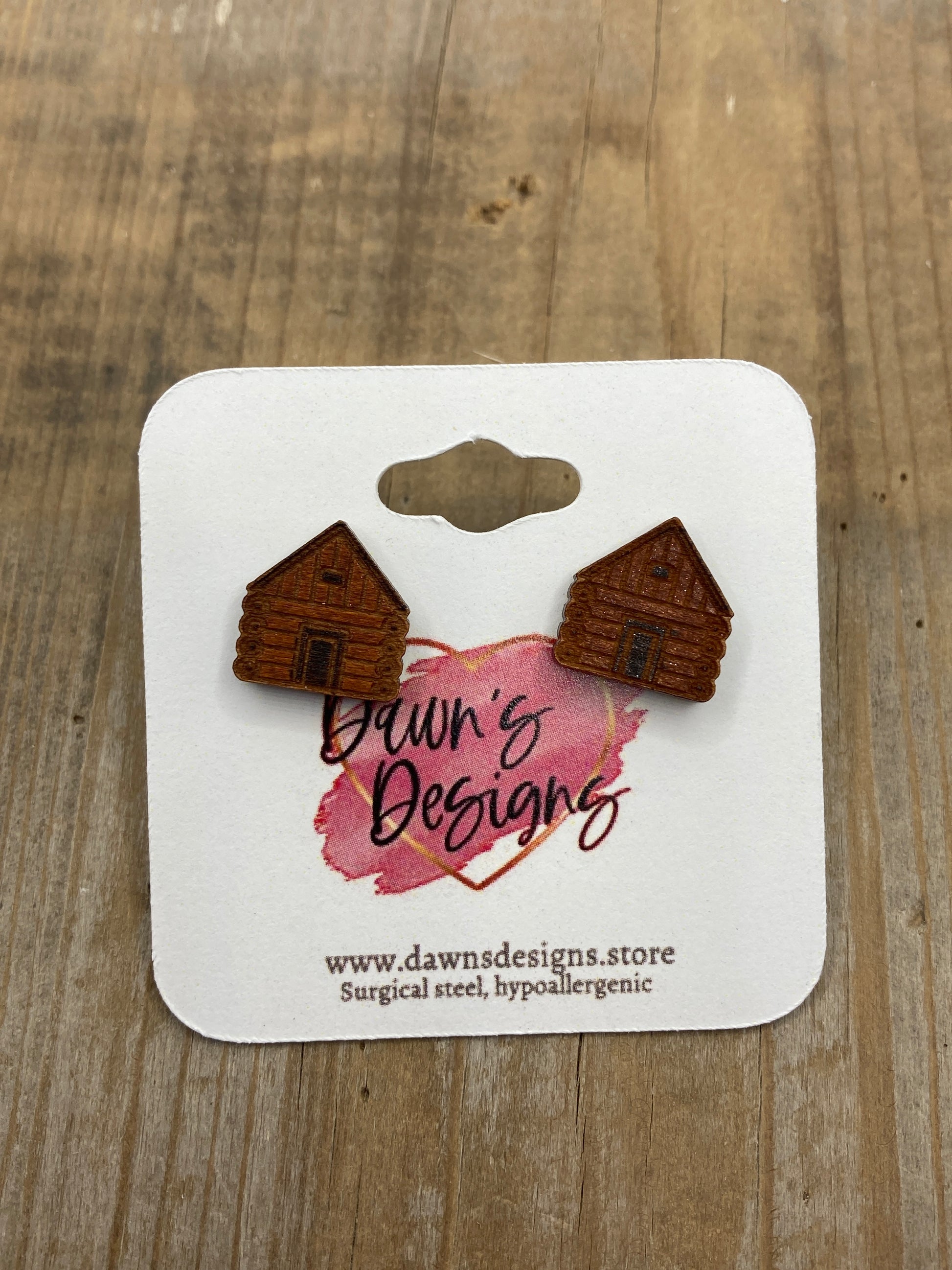 Wooden hand painted log cabin stud earring 1/2"