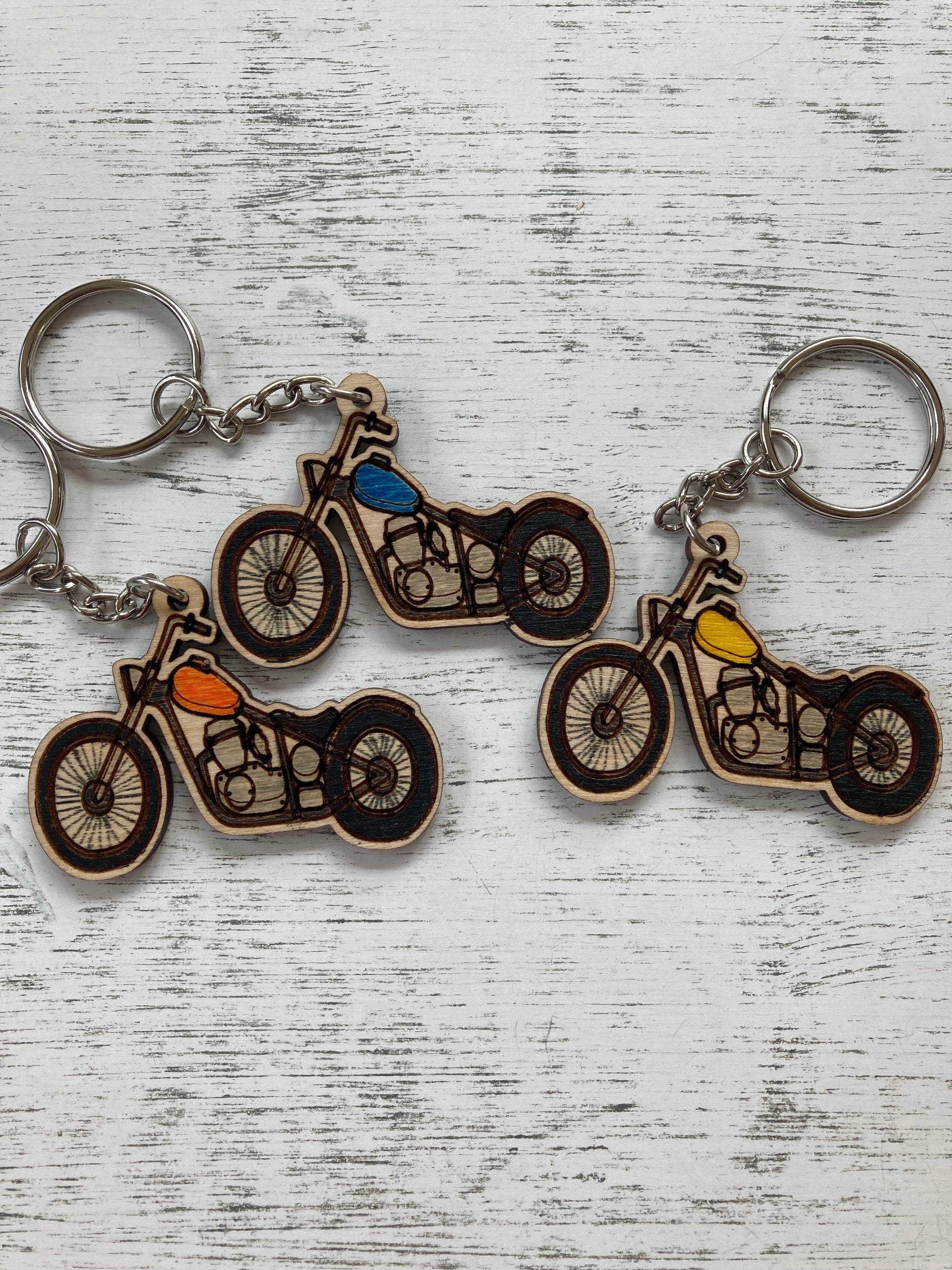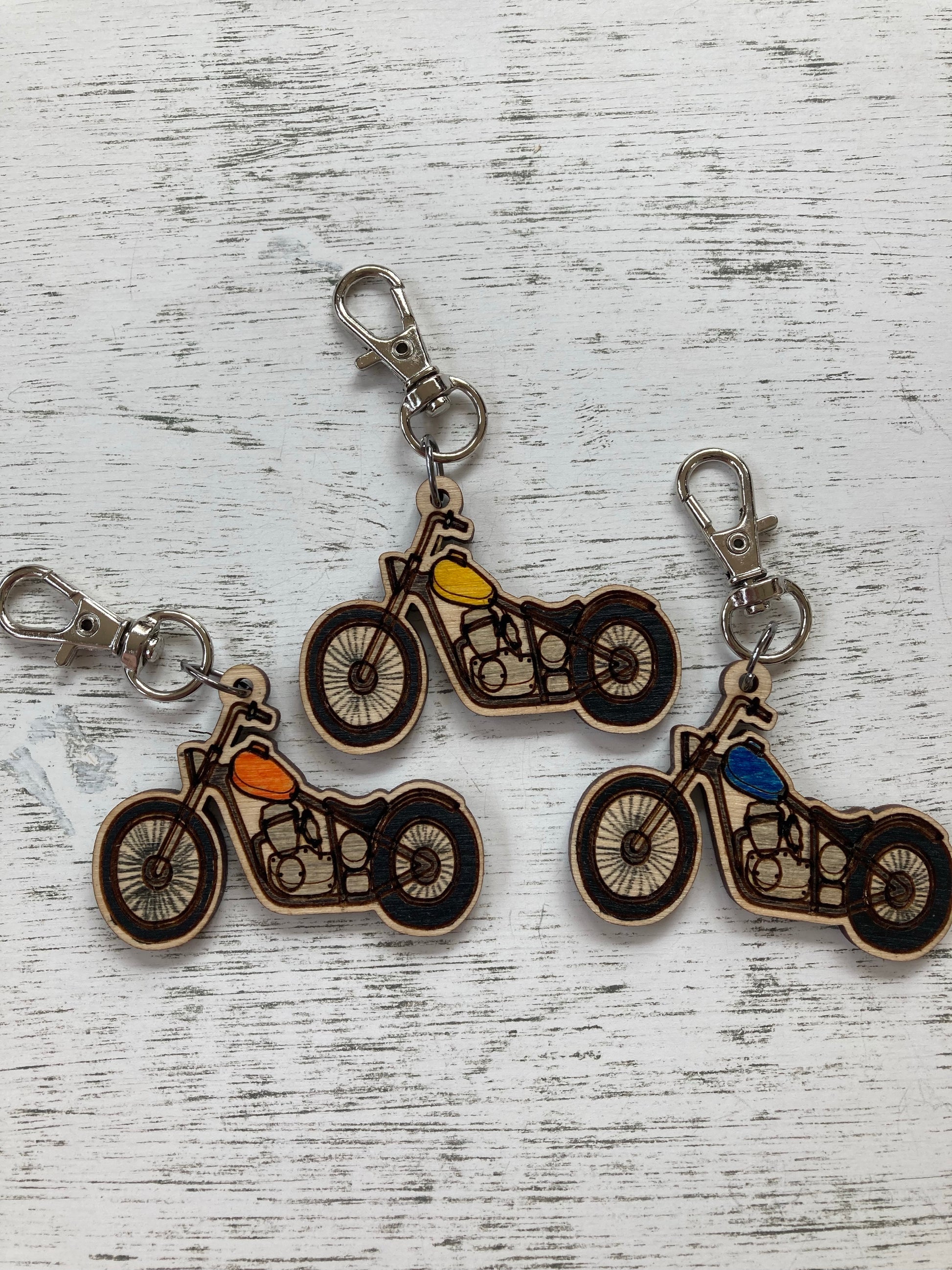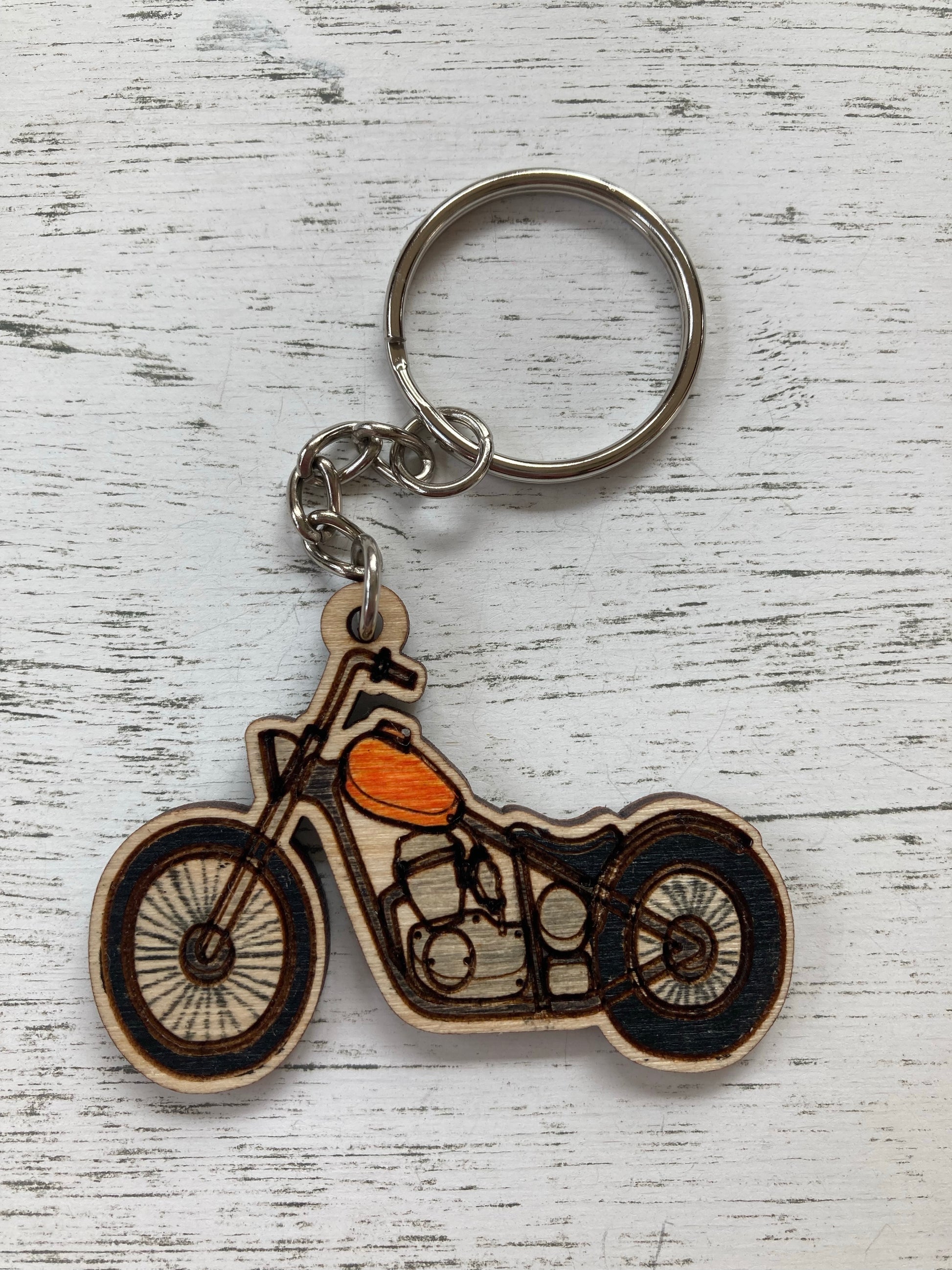Wooden hand painted motorcycle keychain