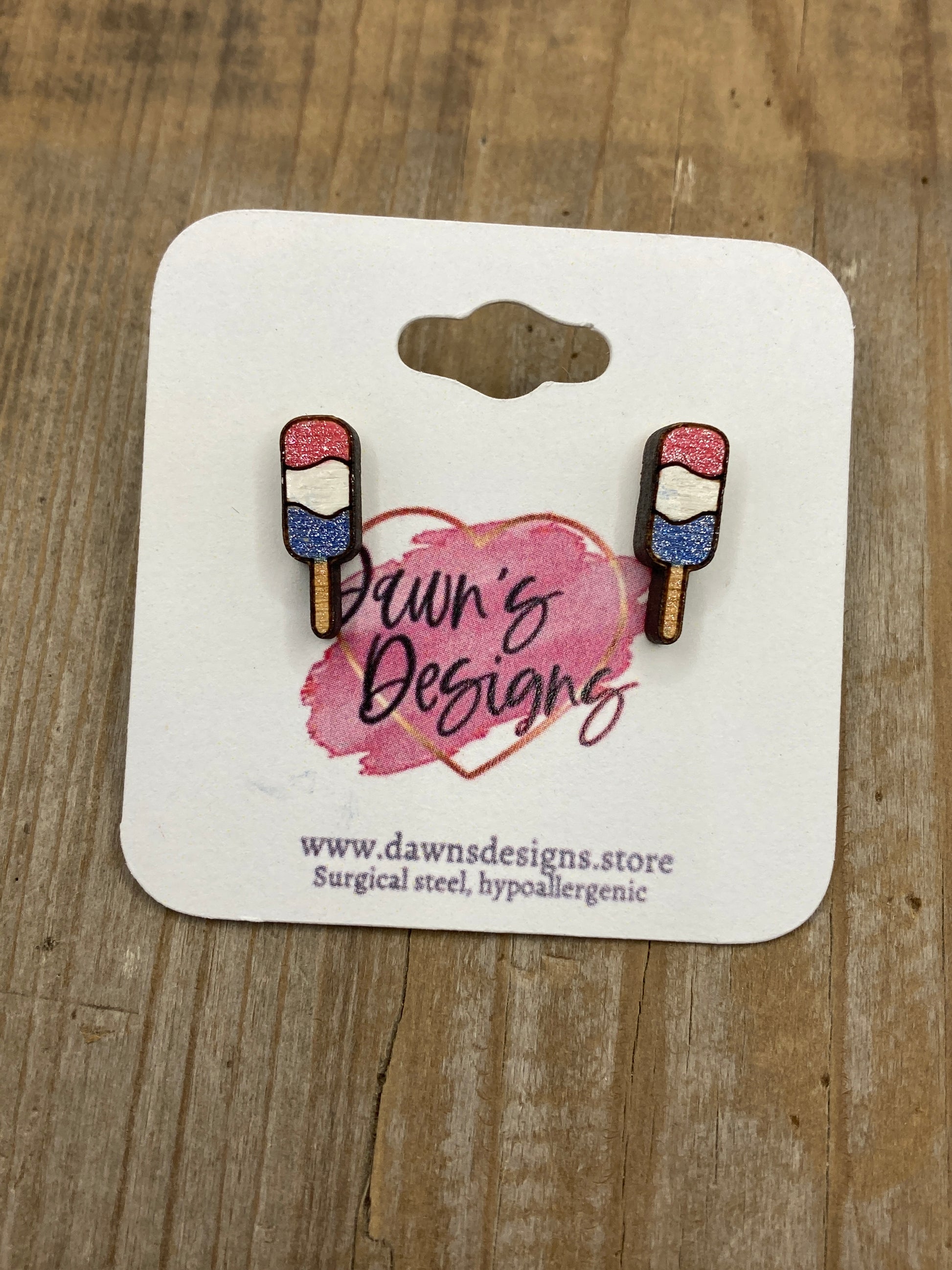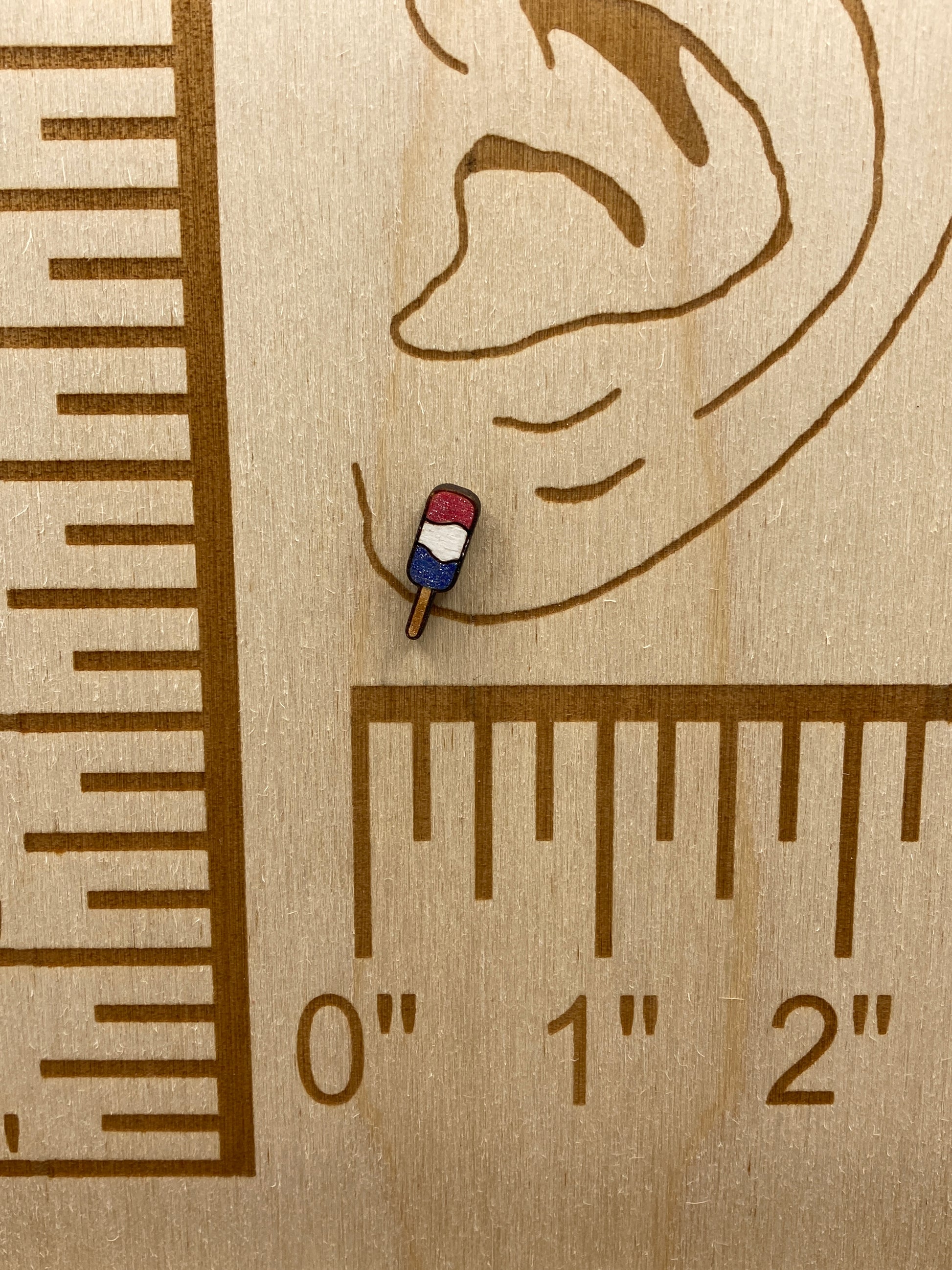 Hand-painted, laser-cut, wooden Popsicle stud earrings. Approx. ½”