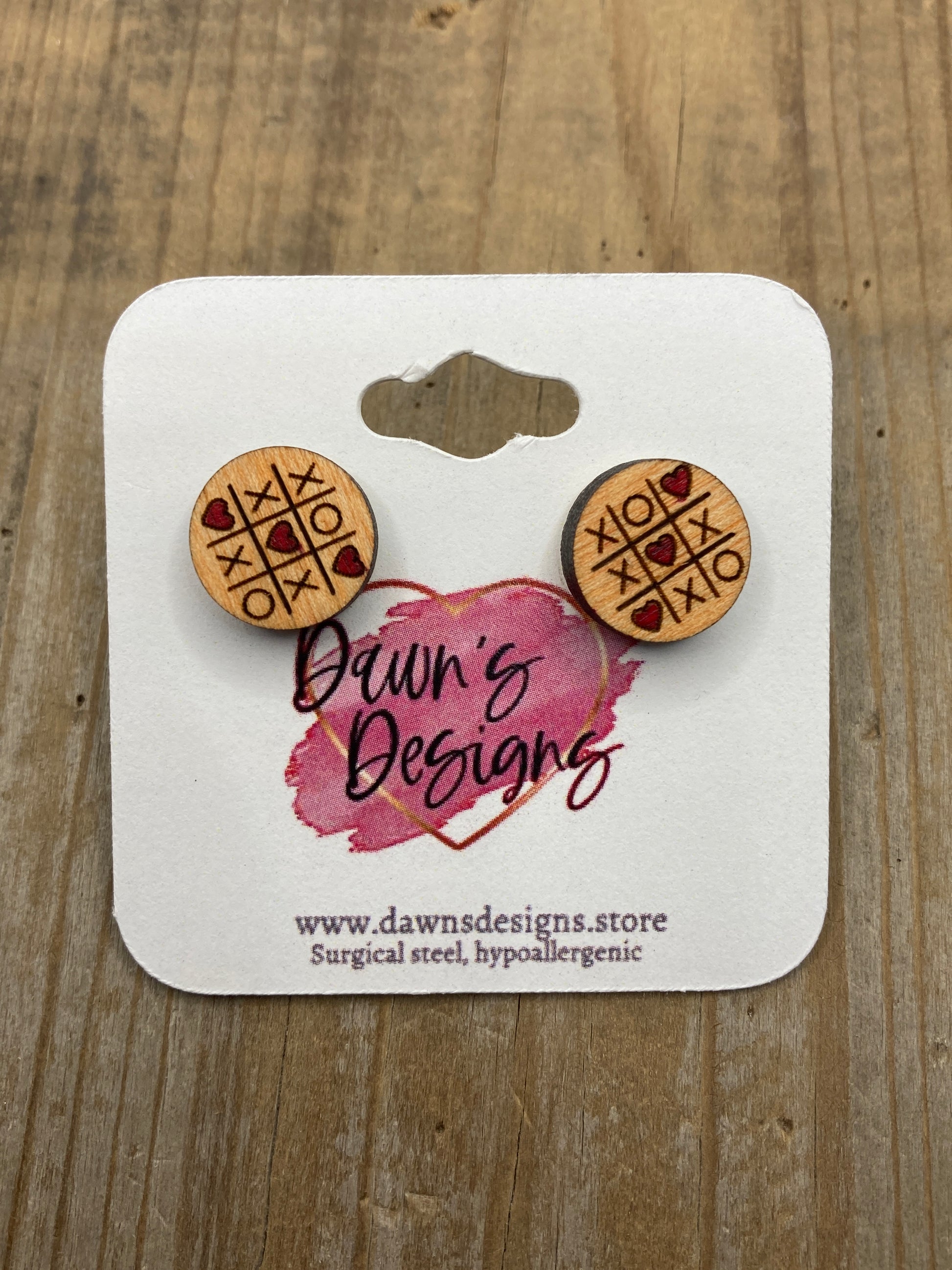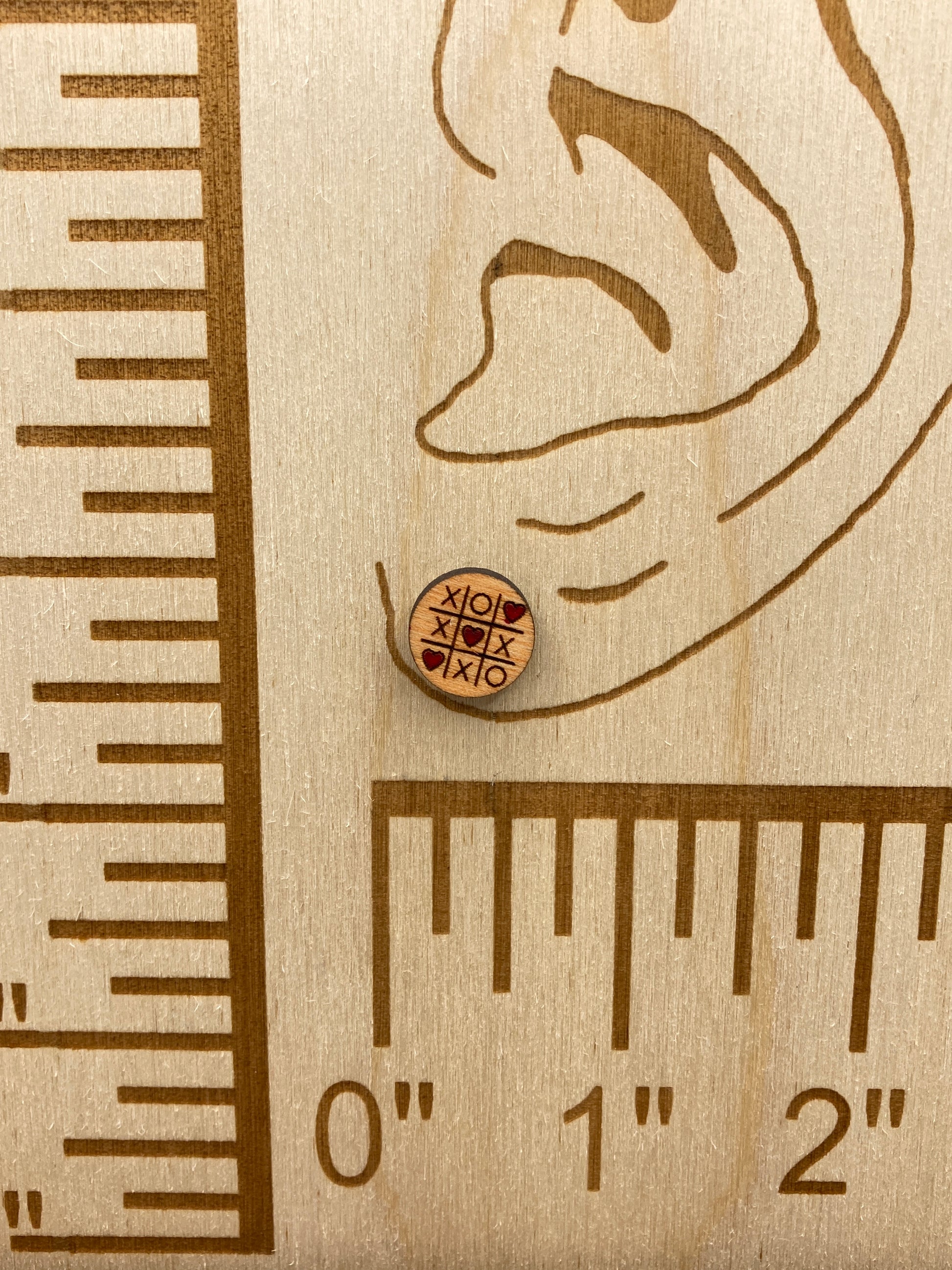 Wooden hand painted tic tac toe stud earrings 1/2"